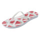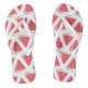 Une paire de tongs avec des tranches de pastèque disposées dans un mignon motif rose, vert et blanc. Idéal pour l'été ou les vacances pour un amoureux de pastèque.