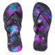 Une paire de tongs à la galaxie violette et bleue. Le cadeau d'été ou de vacances idéal pour les amoureux de l'espace.