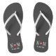 Des sandales à tongs personnalisées personnalisées avec un coeur mignon et vos initiales monogrammes et date mariage. Cliquez sur Customiser pour modifier les polices de texte et les couleurs ou ajouter vos propres images pour créer un design unique et unique !