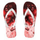 Il s'agit de tongs adultes, disponibles en tailles homme et femme. L'oeuvre est un rendu de gouttes de pluie dans les tons rouges.