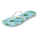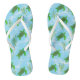 Tortues de mer vertes nageant en diagonale tongs. Des sandales simples et mignonnes pour vos vacances d'été sur la côte. Ces tortues de mer nagent dans un océan bleu clair. On peut voir les algues en dessous. Vous pourrez ainsi profiter de vos journées d'été à la piscine ou à la plage.