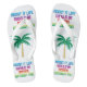 Des tongs avec un grand message optimiste "la vie serait ennuyeuse sans moi !" Comme c'est vrai pour beaucoup de nos amis et de notre famille. Un flip-flop amusant pour les vacances ou les vacances d'été cette saison. Maman les aimera pour la Fête des Mères ou l'anniversaire et soeur ou petite amie adorera le fait qu'ils rendent les gens heureux. Des mots d'arc-en-ciel lumineux et un joli palmier. Les amateurs de plage portent des tongs ou pour tout l'été.