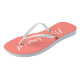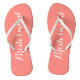Offrez à vos serveuses d'accueil mariages ces tongs élégantes de demoiselles d'honneur qui sont une couleur de corail tendance avec un script blanc stylisé pour compléter votre schéma de couleurs mariages similaire. Sélectionnez la taille du pied avec d'autres options. Disponible dans de nombreux modèles de couleurs mariages de demoiselles d'honneur populaires.