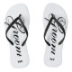 Des tongs de mariage monogrammées rustiques pour marié et marié ou invités. Couleur de sangle personnalisée pour lui et elle / hommes et femmes. Couleur arrière - plan personnalisable et personnalisable avec des initiales de nom ou monogramme. Le noir et blanc moderne ses sandales et ses sandales de coin avec la typographie stylisée de calligraphie. Soirée pour le thème de la plage mariage, mariage, douche nuptiale, fiançailles, anniversaire, barbecue, bachelorette, bachelor, voyage de week-end pour filles etc. Faites vos propres flipflops de classe pour mariée et mariée, demoiselles d'honneur, fille de fleurs, mère de la mariée, groomsmen, mariée d'équipe, invités etc. Fun souvenir chaussons pour joli mariage de destination estivale en juillet et août. Aussi agréable pour les couples mariés en lune de miel en vacances en lune de miel. Lettres tourbillonnant de style vintage.