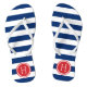 Sandales à tongs imprimées sur mesure avec un motif à rayures nautiques préppy et votre monogramme ou autre texte personnalisé dans un cadre circulaire. Cliquez sur Customiser pour modifier les polices de texte et les couleurs ou ajouter vos propres images pour créer un design unique et unique !