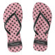 Tourner les tongs avec un motif de pois rétro en noir sur une couleur arrière - plan personnalisée rose. Personnalisez-les avec un nom, un monogramme ou un texte et changez la police si vous le souhaitez. Ces mignonnes sandales font un cadeau amusant en été pour elle!