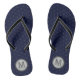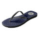 Élégante chatte tongs monogrammées dans l'arrière - plan bleu foncé et pois gris. Monogramme en gris.