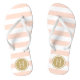 Sandales à tongs imprimées sur mesure avec un motif à rayures nautiques préppy et votre monogramme ou autre texte personnalisé dans un cadre circulaire. Cliquez sur Customiser pour modifier les polices de texte et les couleurs ou ajouter vos propres images pour créer un design unique et unique !