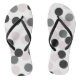 Des tongs modernes et fantaisistes sont équipés d'un motif grand point noir et d'un brun. Des tongs amusants et uniques qui seront un accent parfait pour toute tenue. D'autres couleurs sont disponibles.