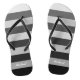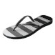 Une paire de tongs avec des tons monochromes cool de couleur grise rayures motif design et une impression de nom blanc personnalisable.