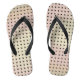 Le motif original par HomeWare sur ces larges sangles Flip Flops est exactement ce qu'on appelle, un motif de grille fait d'une photo originale de l'arrière d'une chaise. Des points carrés gris foncé et marron dans les rangées de la grille. Les lignes courbent légèrement comme le chaise. Tout près, les petits points carrés sont des trous aux coins arrondis et une dimension d'ombre autour des bords supérieur et droit. Les couleurs du corps de la chaise sont des tons muets de la nature, vert sauge pâle se mélangeant à du mauve pâle, puis doux, marron sablonneux, qui semblent avoir été peints sur. Ce design abstrait, aux couleurs sophistiquées, a un look très moderne.