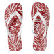 Tongs Motif Répétant à feuilles tropicales blanches et r