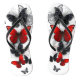 Un troupeau de papillons de morpho volants, réalistes, rouges et noirs sur un arrière - plan blanc avec des gouttes de peinture.