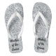 Une façon amusante de danser toute la nuit dans cette confortable conception de parties scintillant argentée personnalisée Mère de la Mariée ou Groom Argent Flip Flops.