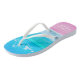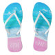 Une mignonne paire de tongs avec une belle photo d'une plage tropicale avec du sable rose, avec un monogramme personnalisé sur le talon de la chaussure. L'accessoire de vacances parfait pour quelqu'un qui aime voyager sur les plages tropicales avec sable rose.