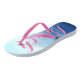 Feuilles personnalisées avec vagues bleues et typographie géante. Vous pouvez personnaliser ces tongs avec votre propre texte personnalisé.