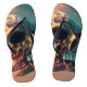 A large skull sits on top of the sand in the ocean, in the style of surreal 3d landscapes, intense color palette, redshift, vibrant illustrations, photo-réaliste landscapes, textural explorations