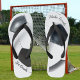 Cette paire sportive de tongs présente le motif classique de football noir et blanc et sont uniques, pointus et idéales pour tous les fans de football, Football ou football. Avec "Fixez des buts et faites des buts!" Texte personnalisable.