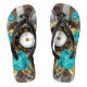 Tongs Steampunk Clock and Turquoise Roses on Striped