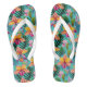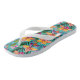 Des tongs adultes parfaits pour tous vos loisirs estivaux, présentés ici en blanc avec un imprimé de palmier tropical coloré et fleuri. Customisez cet objet ou achetez tel quel. Image sous licence