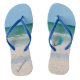 Des tongs à courroie mince personnalisées colorées et amusantes. L'image est une véritable scène de plage de l'île de Sanibel. Peut être personnalisé avec le texte de votre choix. Vous pouvez également choisir un pied en caoutchouc noir ou blanc. Utilisez-vous comme cadeau créatif et unique ou comme un bon souvenir de vacances pour vous-même! Design et photographie par l'auteur et écrivain de voyage de Floride Glenda Motsavage.