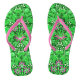 Tongs dans un vintage William Morris motif de jacinthes, tulipes et feuilles, dans les tons vert citron, accentué de rose fuchsia et blanc, sur un arrière - plan vert émeraude profond