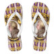 Les illustrations originales de ZoeSPEAK sur cette large sangle Flip Flops présentent un portrait du compositeur de musique classique Wolfgang Amadeus Mozart. Le portrait est un profil placé dans les illustrations originales de Zoe d’un cadre doré ovale orné, accroché à un arrière - plan de papier peint violet avec des grappes dorées de raisins en rangs, et des rayures verticales blanches et lavandes.