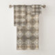 Serviettes de bain en dentelle blanche, beige et gris. Un design contemporain et moderne, à l'atmosphère vintage. Un ensemble neutre et élégant qui vient compléter votre décor de salle de bain. Ajoutez un nom, un monogramme ou modifiez la couleur de l'arrière - plan pour customiser. Matching Bath Mat et accessoires disponibles.