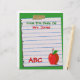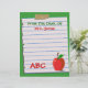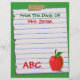 Top 10 Letterhead Views de Zazzle! Personnalisez cette jolie en-tête personnalisée, "From The Desk Of", avec n'importe quel nom sur ce amusant papier carnet déchiré et doublé collé à un arrière - plan vert avec ABC en lettres rouges et une illustration de pomme rouge sur le fond. Ou, laissez le texte entièrement de côté. Modifiez facilement la couleur et le style de texte et la couleur arrière - plans. Fait un grand cadeau personnalisé pour les enseignants. Personnalisez-en aujourd'hui ! Idéal pour retourner à l'école !