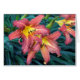 Hémérocalles rouges et jaunes fraîchement arrosées et miroitantes au soleil