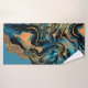 Serviette de bain avec des tourbillons de noir, bleu, orange et vert.
