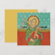 Dans ce détail d'une empreinte dévotionnelle belge du 19ème siècle, un St. Joseph aux cheveux gris mûrs se dresse devant un mur rouge suspendu à une garniture jaune doré. La tapisserie est tapissée de croix à armes égales enfermées dans des carrés rotatifs. Son accrochage défie l'explication logique, car l'arrière - plan est constitué d'un ciel bleu-aqua infiniment profond, obscurci d'étoiles. + Saint-Joseph est richement garni de couleurs fortes. Sa robe est rouge, son manteau, vert avec une doublure d'aqua foncé et des bordures jaunes dorées. Il tient un spray de lys blancs symbolisant la pureté dans sa main droite et une règle de menuisier brun en L qui témoigne de sa profession dans sa gauche. Sous les pieds sablés de Saint-Joseph sur l’image pleine longueur qui apparaît, par exemple, sur nos cartes de voeux et nos affiches dans cette COLLECTION, il y a d’autres attributs - un petit dragon, une couronne, un rouleau et un globe portant les noms des continents peuplés - qui parlent de son rôle de protecteur de l’Église. + Cette lithographie chromo- ou couleur a été publiée à l'origine pour promulguer "Prière à saint Joseph" du Pape Léon XIII de 1889. + Fête principale de saint Joseph : 19 mars ; Fête de saint Joseph le travailleur : 1 mai + Crédit d'image (VVP 09) : Détail d'un chromolithographe antique de saint Joseph, protecteur de l'Église, Priez pour nous [H. Jozef, beschermer der H. Kerk, B.V.O.] initialement publié par K[arel] v[an] d[er] Vyvere-Petyt, Bruges, Belgique, c. 1890, de la collection privée de l’éphémère religieuse du designer.