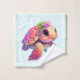 Serviette sertie avec une jolie illustration d'une tortue de mer. Corps et coquille roses avec garniture florale. Ça a l'air heureux et adorable.
