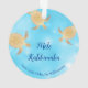 Tortues tribales d'or sur un arrière - plan de parties scintillant bleu ciel. Avec un texte de Noël hawaïen Mele Kalikimaka et un nom de famille personnalisé. Les fêtes de Noël sont toujours amusantes et apportent bonheur et chaleur à la vie de chacun. Et Noël à Hawaï a son charme unique, sa ferveur et sa joie. Dites Joyeux Noël à vos proches à Hawaiian.