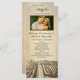 Programmes de mariage des vignobles Vintages toscans - dispose d'un paysage de vignobles au fond. Le dessus a un design de raisins, de vignes et de feuilles avec un arrière - plan papier parchemin vintage ou imprimé. Changez la photo de démo à l'une de vos photos.