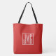 Tote Bag 3 Initiales Monogramme | Rouge et blanc (ou couleu