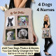 Tote Bag 4 Chiens, 4 Noms, Peut Changer De Texte, Photo Chi