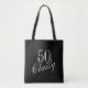 50 et Classy Black Elegant Pink Script Sac fourre-tout d'anniversaire. Design élégant avec script tendance dans les couleurs blanches et roses. Le sac est un grand cadeau pour une femme célébrant son 50e anniversaire.