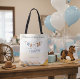 Round up your loved ones for an all around good time with this charming "A Little Cowboy is On The Way" baby shower theme! This beautifully designed tote bag captures the rustic charm of the Wild West, perfect for welcoming your little buckaroo. There is lasso clothesline fun hung with a denim sheriff baby bodysuit, cowboy boots, cowboy hat, and a bandana that doubles as a bib. A watercolor western canyon backdrop sets the scene on the front and back of the bag. Its unique, watercolor style and playful details will add a special touch to your favors as you welcome your new little cowboy. Easily edit the text on the front and back and if you would like to, change the font style, size, color, and placement.