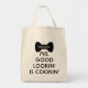 C'est une drôle d'idée cadeau de Sac fourre-tout d'épicerie personnalisée : Mr Good Lookin' Is Cookin'. Design dispose d'une police de typographie moderne, d'un accent bowtie et d'un nom personnalisé.