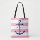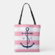 Tote Bag Ancre bleu monogramme sur les rayures roses