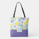 Tote Bag Aqua Periwinkle Yellow Aquarelle tiges