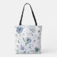 Tote Bag Aquarelle de violet bleu monogramme Motif floral