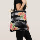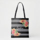 Tote Bag Aquarelle florale personnalisée sur rayures noires