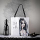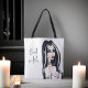 Ce sac fourre-tout noir et blanc d'Halloween, d'une beauté envoûtante, est conçu avec une sorcière gothique aquarelle peinte à la main