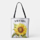 Tote Bag Aquarelle Jaune Personnalisé Nom Tournesol