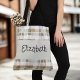 Sac fourre-tout de plaid moderne avec un nom personnalisable. Les couleurs de sauge vert et marron en automne vous accompagneront lors de vos voyages au marché de l'automne et au-delà.