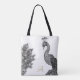 Un beau paon aquarellé à la main sur un sac fourre-tout noir et blanc fantaisiste ! Customiser le monogramme ou supprimer