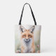 Tote Bag Aquarelle Peinture Fox avec Fleurs marguerites