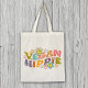 Ce sac fourre-tout "Vegan Hippie" présente une citation avec des fleurs.